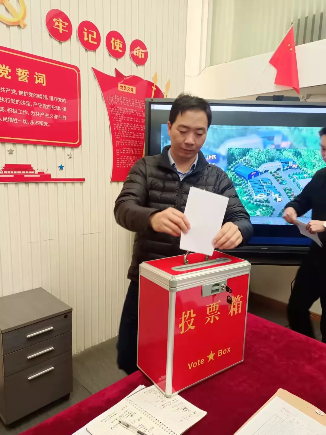 會議采取了無記名方式進行投票表決,投票監(jiān)票人為組織委員兼紀(jì)檢委員徐禮盛同志,計票人為第一黨小組組長陳濤同志。最后由支部書記林金錯宣布投票表決結(jié)果:本次大會一致通過鄭金雙、李禮治、鄭才源、陳春俤、林瑜五位同志接收為中共預(yù)備黨員。