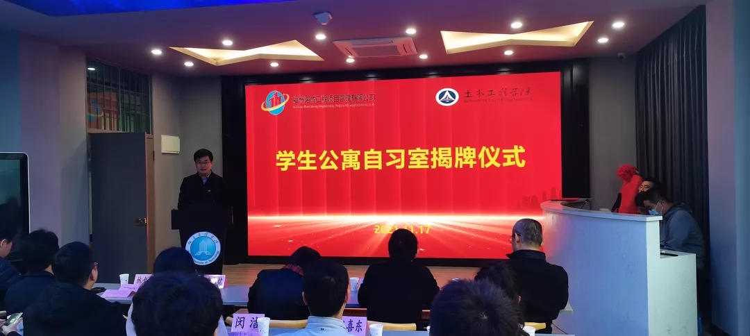 2021年11月17日下午,由福州諾成工程項目管理有限公司捐資助建的“學生公寓自習室”揭牌儀式,在福建工程學院土木工程學院會議室里隆重舉行,標志著由公司首個捐建的學生自習室工程項目正式落地。